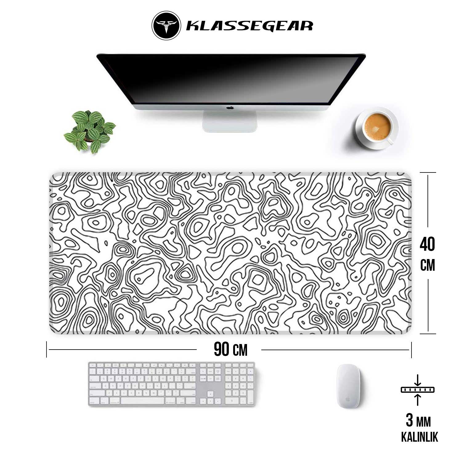 • White Map Lines · Oyuncu Gaming (Oyuncu) Mouse Pad (90x40)